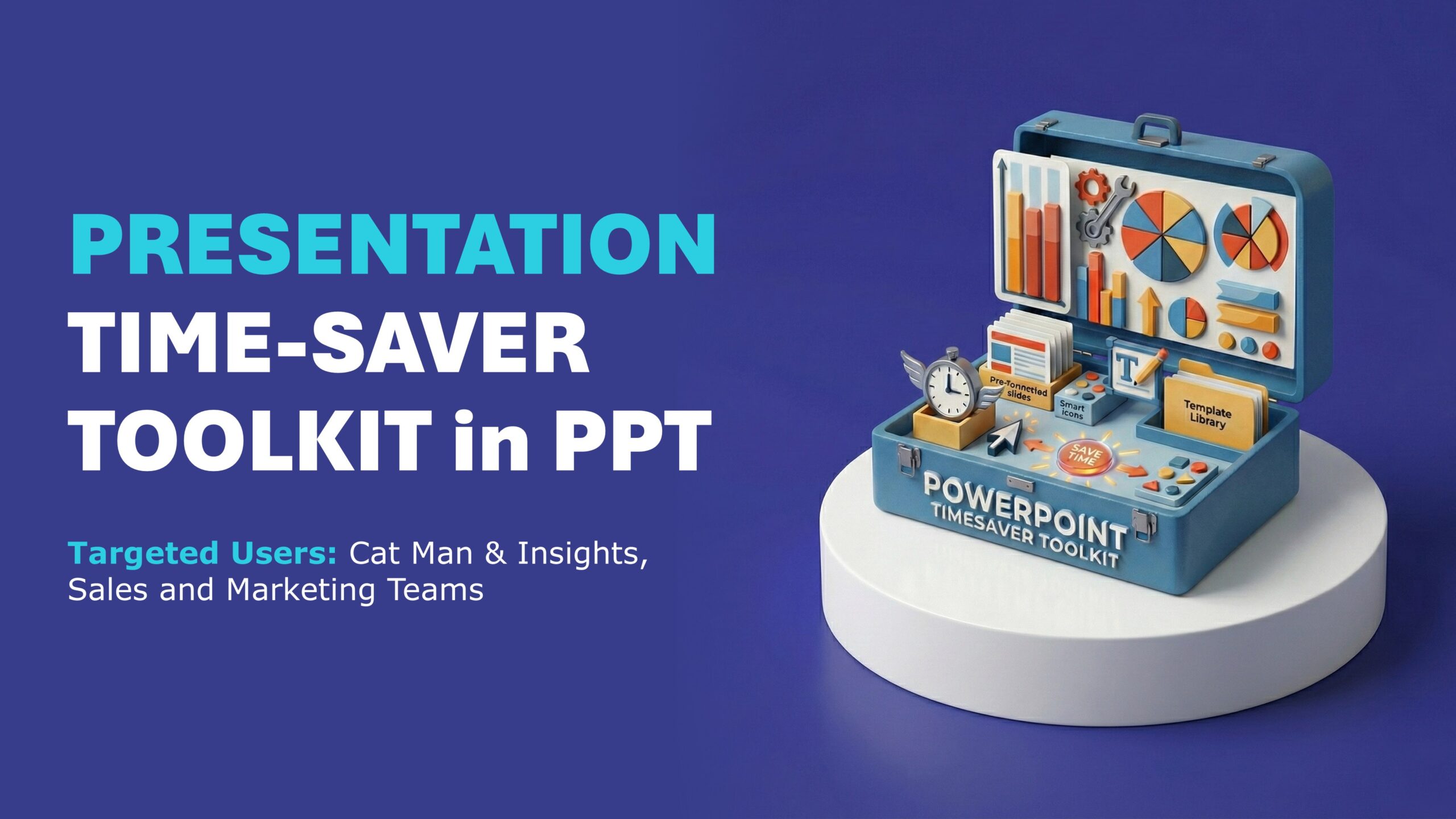 That’s where a Presentation Time Saver Toolkit comes in. We call it a TST. Many of our CPG Sales and Cat Man clients use these toolkits to create stronger selling stories and save hundreds, sometimes thousands, of hours each year. Even with AI in the mix, teams still need this, and the ROI shows up fast.