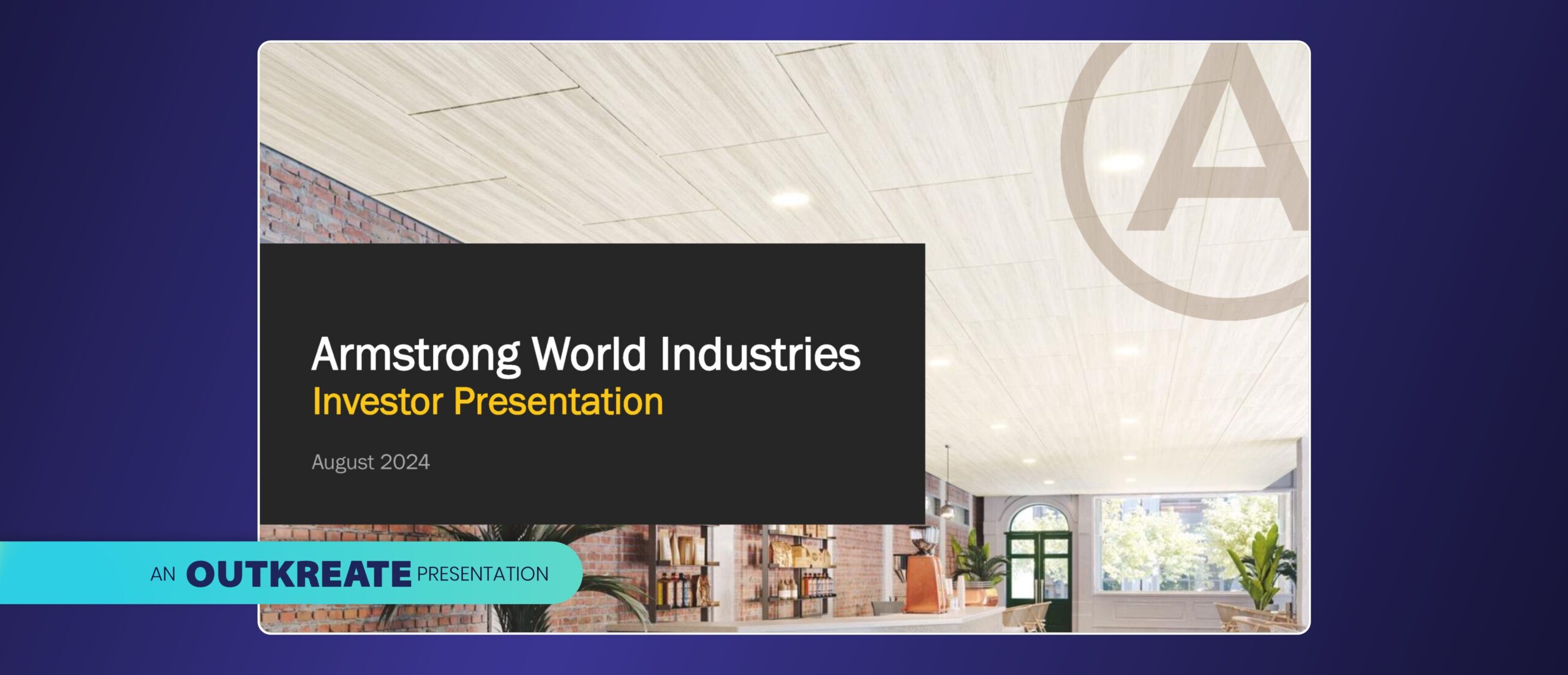 "For AWI’s 2022 Investor Day, OUTKREATE delivered slides that were clear and visually engaging, and successfully communicated to our audiences. With OUTKREATE doing the heavy-lifting on slide-design, my small team was able to work on higher-value tasks -- resulting in a successful Investor Day."